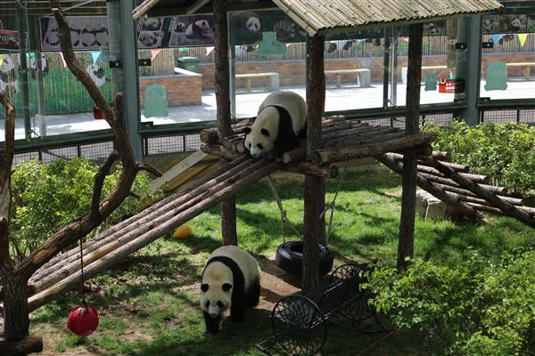 9月26日引進西北地區(qū)首對大熊貓——“七巧”、“七喜”。“七巧”、“七喜”是一對跨夜出生的雙胞胎姐妹,父親“美蘭”是從美國亞特蘭大歸來的華僑,母親“奇?!笔倾氪ǖ卣鸷笮茇埢爻錾牡谝恢淮笮茇垼鉃椤捌砀!薄!捌咔伞?、“七喜”的名字由來有著中國傳統(tǒng)文化典故,雙胞胎中熊貓姐姐出生于2014年8月12日,為中國陰歷的七夕節(jié),飼養(yǎng)員引用節(jié)日里“穿針乞巧”的民俗,給這只萌寶熊貓姐姐起名“七巧”,妹妹隔夜出生,為了紀(jì)念他們是同胎熊貓寶寶,給妹妹取名“七喜”諧音“七夕”。