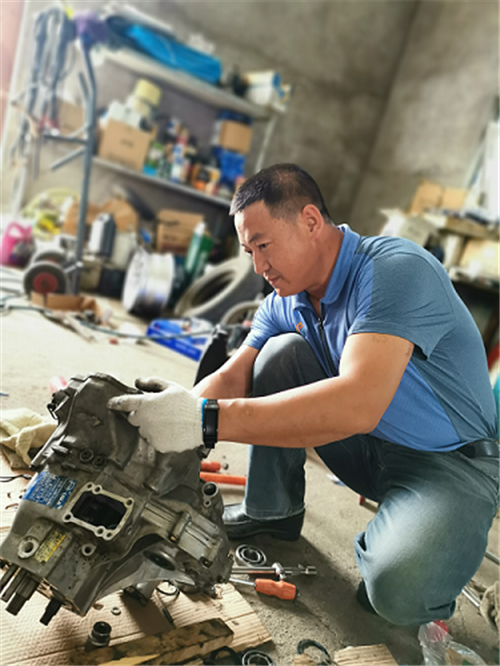 工作是辛苦的,但每當(dāng)一輛輛出現(xiàn)問題的車子修好,再次發(fā)出轟鳴聲時,劉世飛都由衷的感到開心與自豪。在修理過程中,他細(xì)細(xì)地用毛巾清理擦拭著每一顆螺絲和每一個配件,之后才會進(jìn)行安裝。車子凡是活動的部件,都要加油潤滑,每道螺絲上扣前都要抹膠水加固,最后還要再檢查一遍所有螺帽,對松動的地方緊固。工作量大,劉世飛卻從不缺失耐心與細(xì)心,這大概也是他技術(shù)越來越精湛的原因。