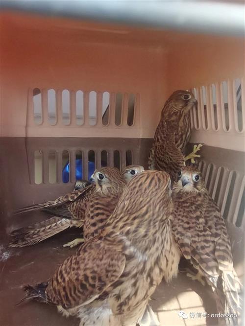 本次共放飛6只紅隼和2只雕鸮,都屬于國家二級保護(hù)動物。5只紅隼是準(zhǔn)格爾旗第一派出所救護(hù),當(dāng)時村民自家附近樹下發(fā)現(xiàn)5只剛出窩的幼鳥,派出所接收后立即聯(lián)系我站進(jìn)行了救護(hù)。另外1只紅隼是由東勝區(qū)幸福街派出所救護(hù),當(dāng)時紅隼虛弱,無法飛行,趴臥在地上,隨即聯(lián)系我站進(jìn)行了救護(hù)。