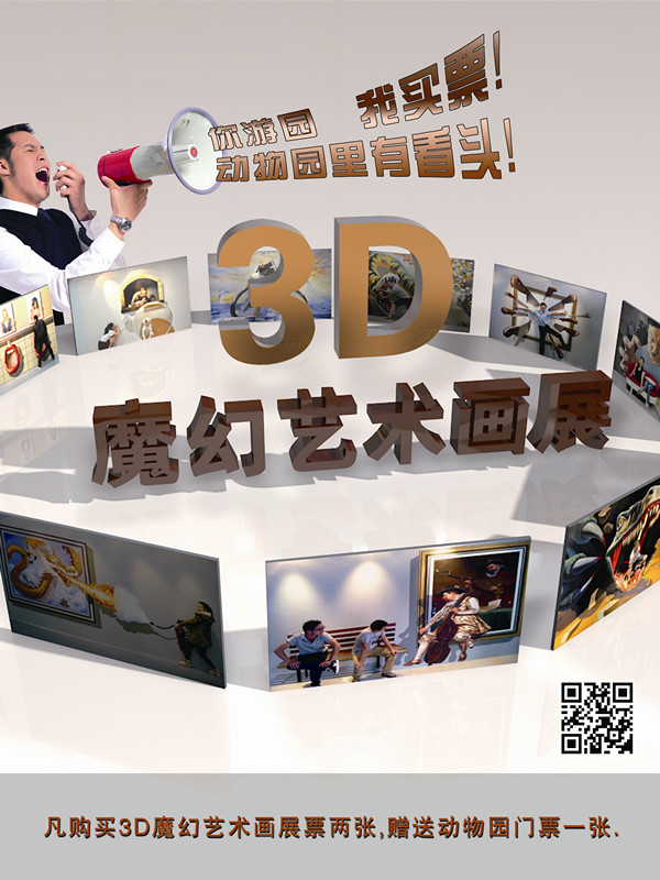 3D畫(huà)展是一種新穎的互動(dòng)性展覽,不僅可以看,還可以玩。進(jìn)入展區(qū),出現(xiàn)真人和畫(huà)面融為一體的奇特效果,這是一個(gè)老少皆宜的展覽,讓您真正體驗(yàn)到 “拉”大象鼻子、與長(zhǎng)頸鹿“親吻”,拿起魚(yú)竿釣兇猛的鱷魚(yú),與偉人“握手”,與外星人 “交手”,牽著恐龍走,臥坐鯊魚(yú)嘴等等現(xiàn)實(shí)生活很難實(shí)現(xiàn)的猶如真實(shí)感受。3D魔幻藝術(shù)最大優(yōu)點(diǎn)在于面向大眾,追求最富有樂(lè)趣的互動(dòng)性,可以說(shuō)是最有親和力的一種藝術(shù)展覽形式。無(wú)論是智力開(kāi)發(fā)期的兒童、還是熱戀中情侶,亦或是家庭,都有不得不來(lái)的理由。只要半小時(shí)就可以玩到high!現(xiàn)在體驗(yàn),還可以享受“體驗(yàn)3D畫(huà)展送動(dòng)物園門(mén)票”的優(yōu)惠活動(dòng)。所以,不管你是從哪里來(lái)的朋友,只要來(lái)一次深刻的3D魔幻體驗(yàn),你就變成這里的主人。趕快行動(dòng)吧,不要忘了帶著您身邊的朋友。