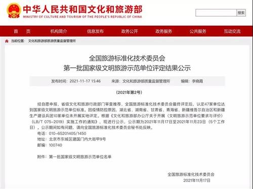 鄂野榮獲國(guó)家級(jí)文明旅游示范單位,感謝游客、社會(huì)各界人士以及評(píng)選單位對(duì)鄂野大力支持和充分肯定。