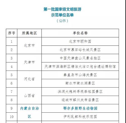 29日,文化和旅游部官網(wǎng)正式公布《全國(guó)旅游標(biāo)準(zhǔn)化技術(shù)委員會(huì)關(guān)于第一批國(guó)家級(jí)文明旅游示范單位的公告》,鄂爾多斯野生動(dòng)物園成功入選。