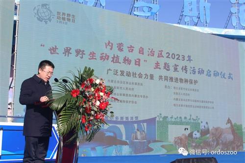 為進一步推動全民參與野生動植物保護,增強廣大群眾保護野生動植物的意識,建設(shè)美麗家園,內(nèi)蒙古自治區(qū)2023年“世界野生動植物日”主題宣傳活動啟動儀式于3月3日由內(nèi)蒙古自治區(qū)林業(yè)和草原局、鄂爾多斯市人民政府、國家林業(yè)和草原局內(nèi)蒙古專員辦、中國野生動物保護協(xié)會聯(lián)合主辦,由鄂爾多斯市林業(yè)和草原局、東勝區(qū)人民政府、內(nèi)蒙古自治區(qū)野生動植物與濕地保護協(xié)會、鄂爾多斯市隆勝野生動物園有限責任公司承辦,在鄂爾多斯野生動物園舉行。