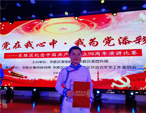 7月1日,由東勝區(qū)委組織部、區(qū)委宣傳部、區(qū)教育體育局、區(qū)總工會(huì)、區(qū)漢語(yǔ)言文學(xué)工作委員會(huì)聯(lián)合舉辦的“黨在我心中·我為黨添彩”紀(jì)念中國(guó)共產(chǎn)黨成立98周年演講比賽在區(qū)蒙古族中學(xué)文體中心舉行。