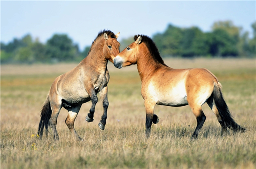 習(xí)性:野馬性機警,善奔馳;一般由強壯的雄馬為首領(lǐng)結(jié)成5-20只馬群,營游移生活。多在晨昏沿固定的路線到泉、溪邊飲水。三五只或十余只成群游蕩。群體中的個體之間在進(jìn)食之后常互相清理皮膚。休息和睡眠有站立、腹臥和側(cè)臥等3種姿勢,但警惕性很高,稍有動靜便處于應(yīng)激狀態(tài)。感覺靈敏,警惕性高,奔跑能力強,晝夜活動,但以夜晚為多。
