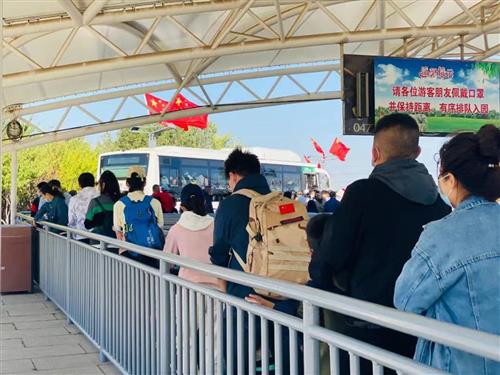 天氣炎熱,在停車場入口,來自包頭、呼市等地的車輛逐漸增多,但并未出現(xiàn)插隊入園、鳴喇叭催促等現(xiàn)象。據(jù)介紹,面對客流壓力,該景區(qū)嚴格落實“限量、預約、錯峰”的要求,每日限輛車進入園區(qū),充分做好防疫措施。