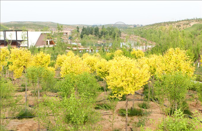 金葉榆又名美人榆的觀賞性極佳。初春時期,中華金葉榆便綻放出嬌黃的葉芽,似無數(shù)朵蠟梅花綻放枝頭,嬌嫩可愛,早早給人們帶來春天的信息;至夏初,葉片變得金黃艷麗,格外醒目,將園區(qū)景點打扮得富麗堂皇;盛夏后至落葉前,樹冠中下部的葉片漸變?yōu)闇\綠色,枝條中上部的葉片仍為金黃色,黃綠相襯。