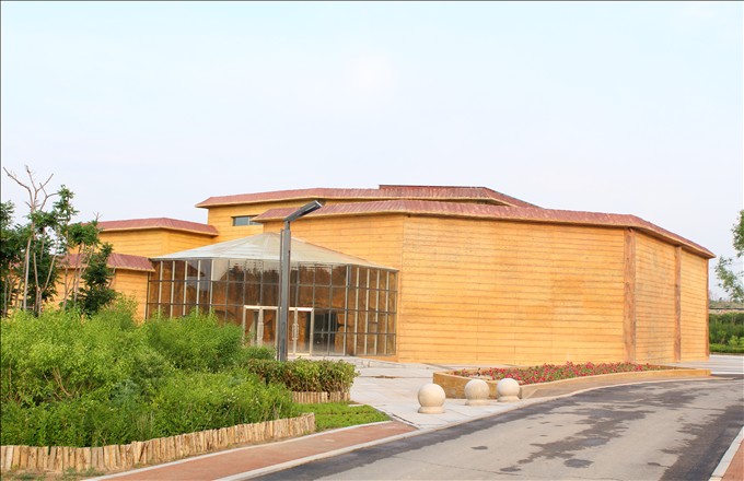 長(zhǎng)頸鹿館:位于非洲區(qū)的靠南地,總建筑面積2444平方米,采用鋼筋混凝土框架結(jié)構(gòu),混凝土砌塊圍護(hù)墻體,仿非洲巖壁GRC外立面裝修。動(dòng)物圈舍一側(cè)與室外場(chǎng)地相通,一側(cè)設(shè)置落地安全玻璃與游客大廳相連,便于游客觀賞。室外沿動(dòng)物活動(dòng)場(chǎng)地設(shè)置通道供游人觀賞。